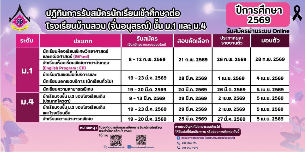 📝📣แจ้งปฏิทินการรับนักเรีย